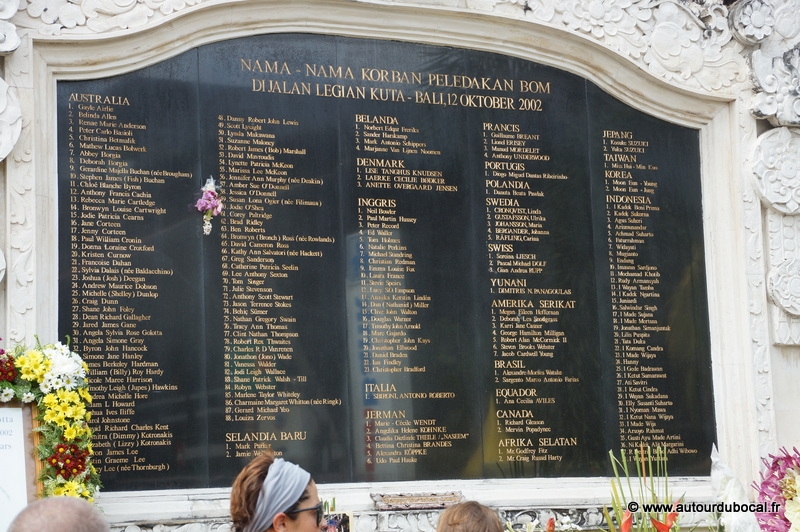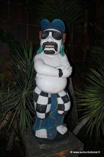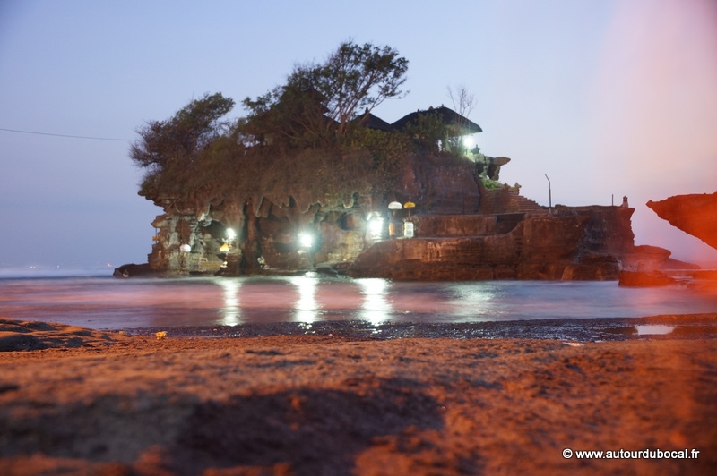 Le taxi nous dit « fifty » minutes, nous comprenons « fifteen » minutes, nous pensons être à l’heure pour le coucher du soleil sur Tanah Lot, nous arrivons à la nuit tombée sur un monument qui doit être éclairé par au moins 5 lampes. Cela a permis à notre imagination de beaucoup travailler.